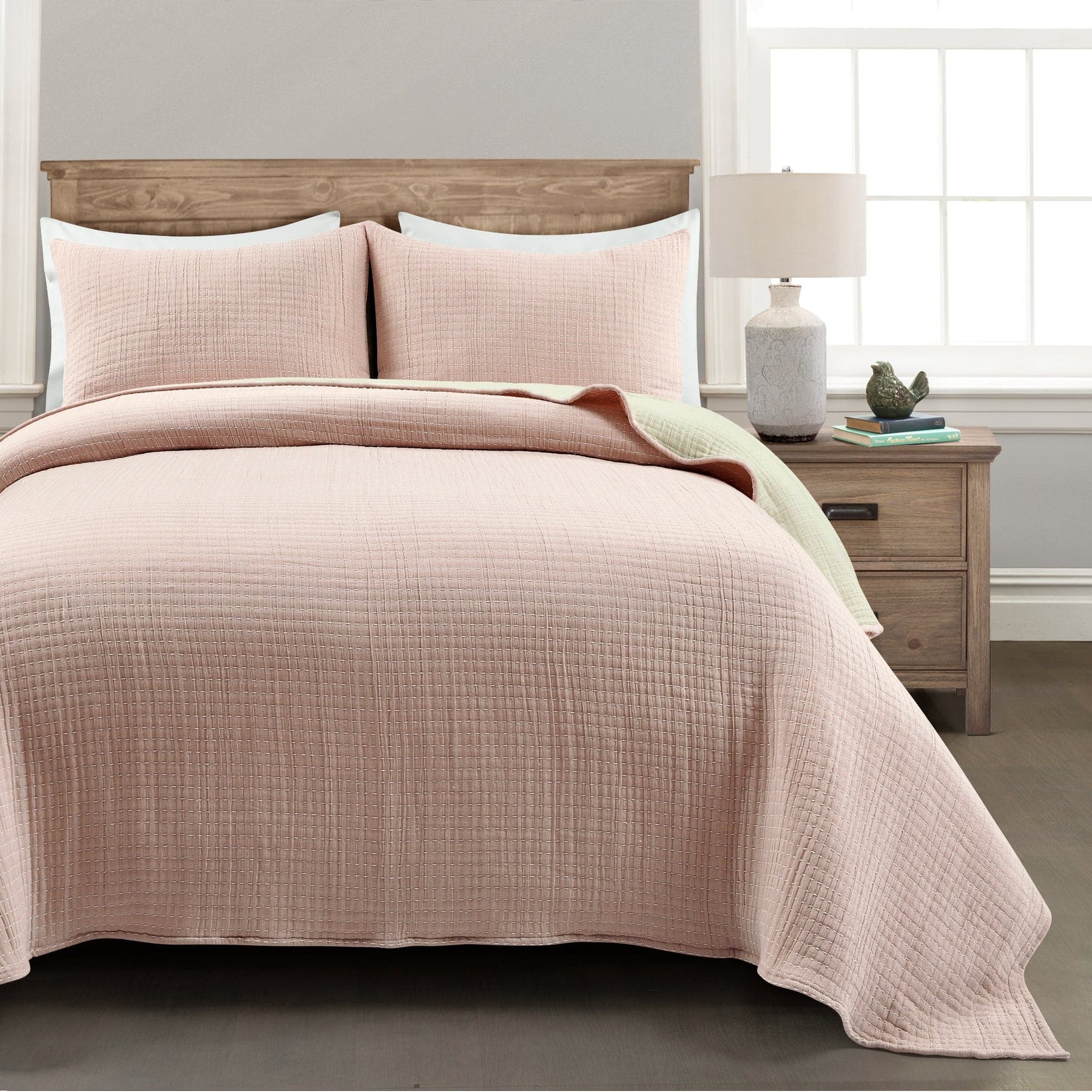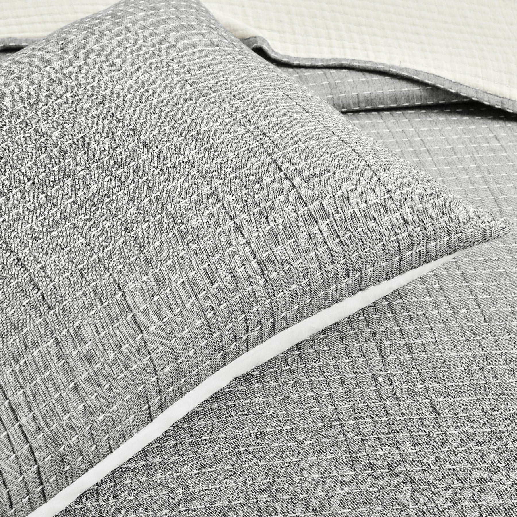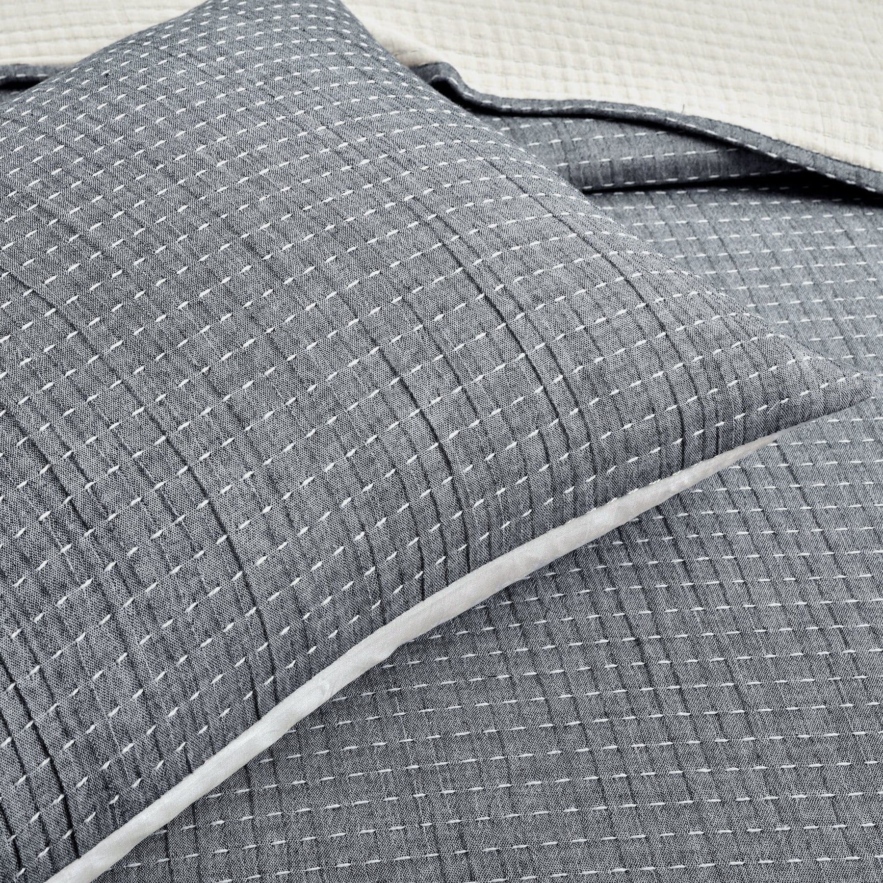 Give your bedroom a stylish upgrade with this 3-piece Solid Kantha Pick Stitch Yarn Dyed Cotton Woven Quilt/Coverlet Set. This high quality affordable set is yarn dyed and woven with pick stitch detail for a textured solid color look. Use it as stand-alone bedding or a layering piece.