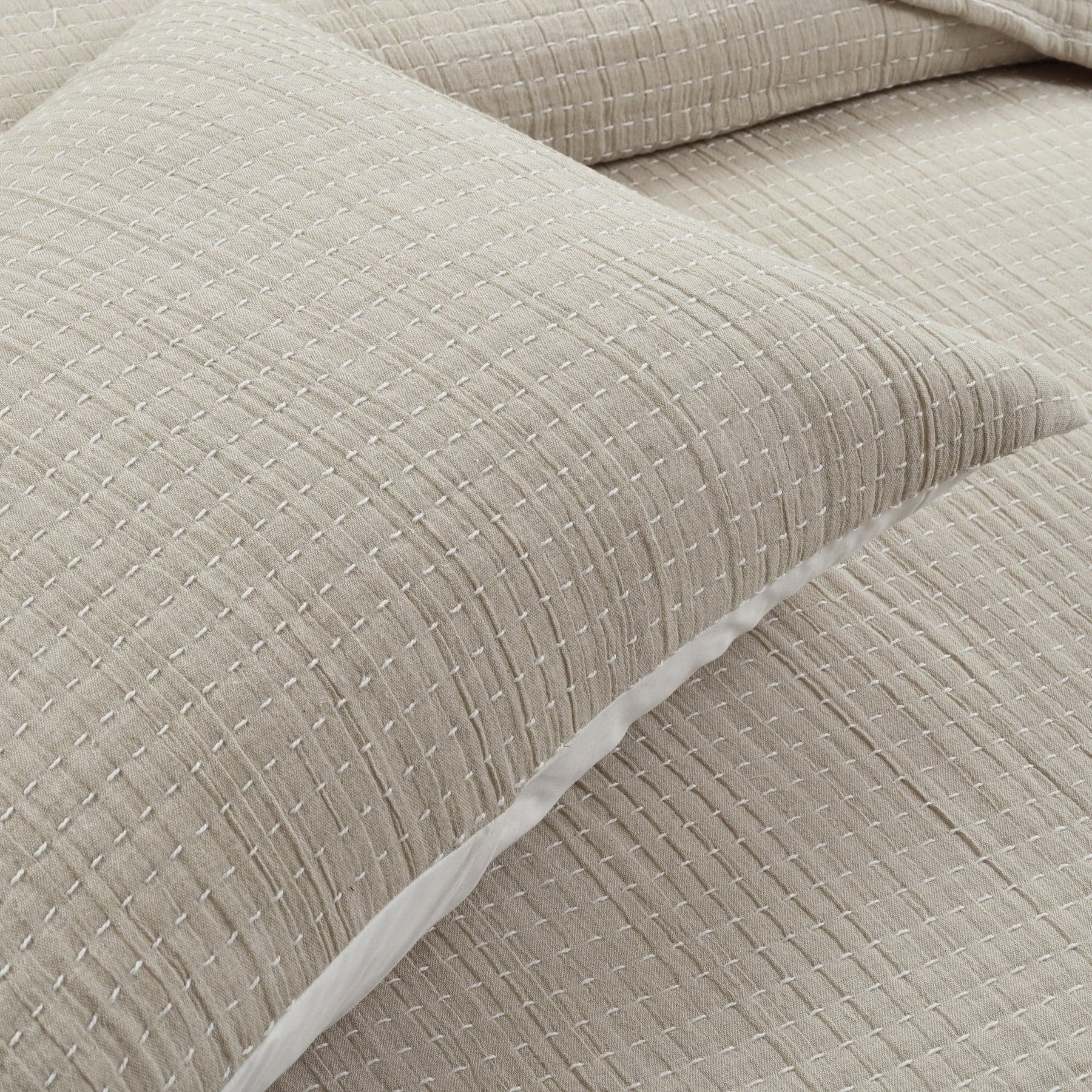 Lush Decor has enhanced its products for your health and well-being. This Solid Kantha Pick Stitch Yarn Dyed Cotton Woven Quilt/Coverlet Set is STANDARD 100 by OEKO-TEX® certified, which means the fabric, dyes and all components have been tested in an independent laboratory and certified against a list of more than 350 harmful substances.