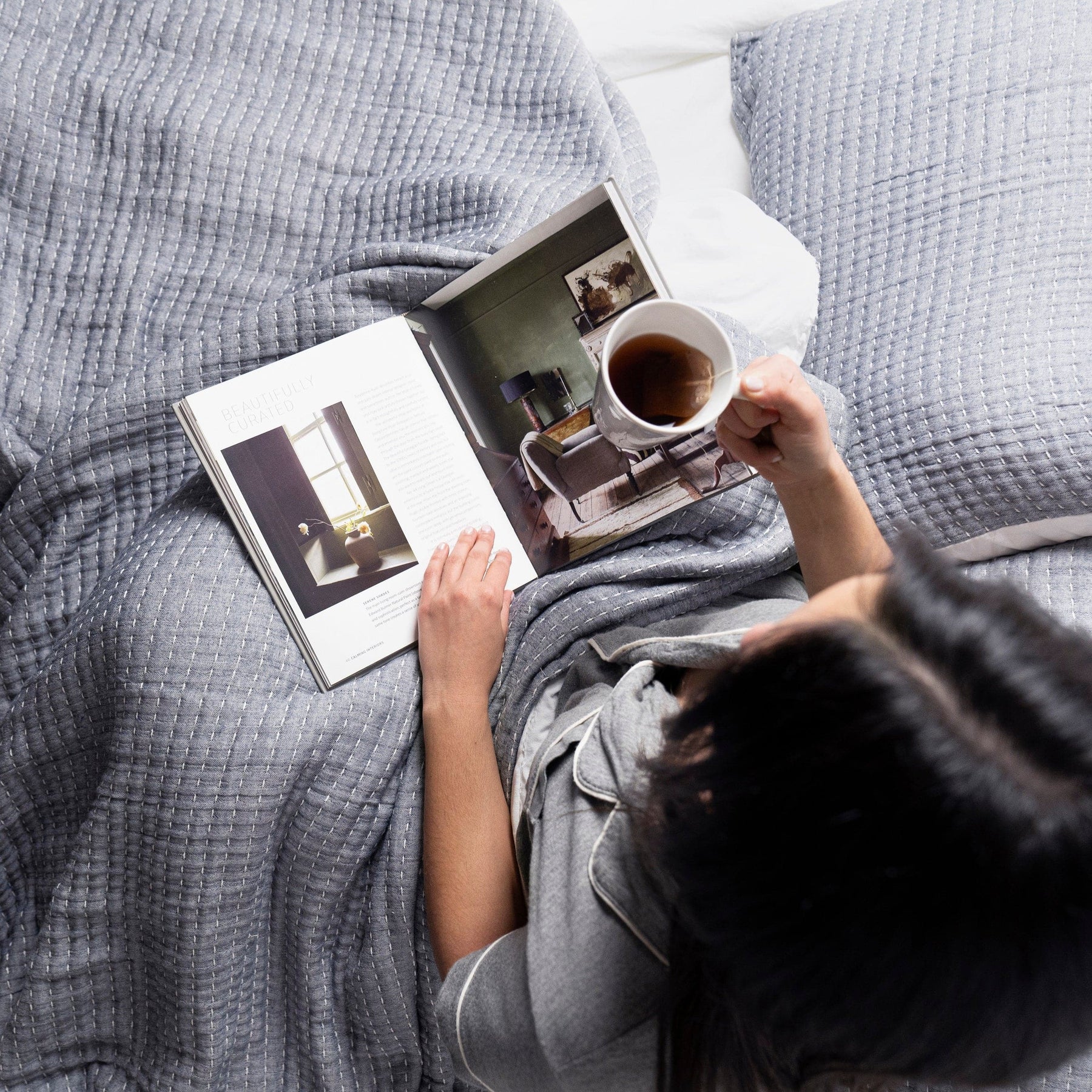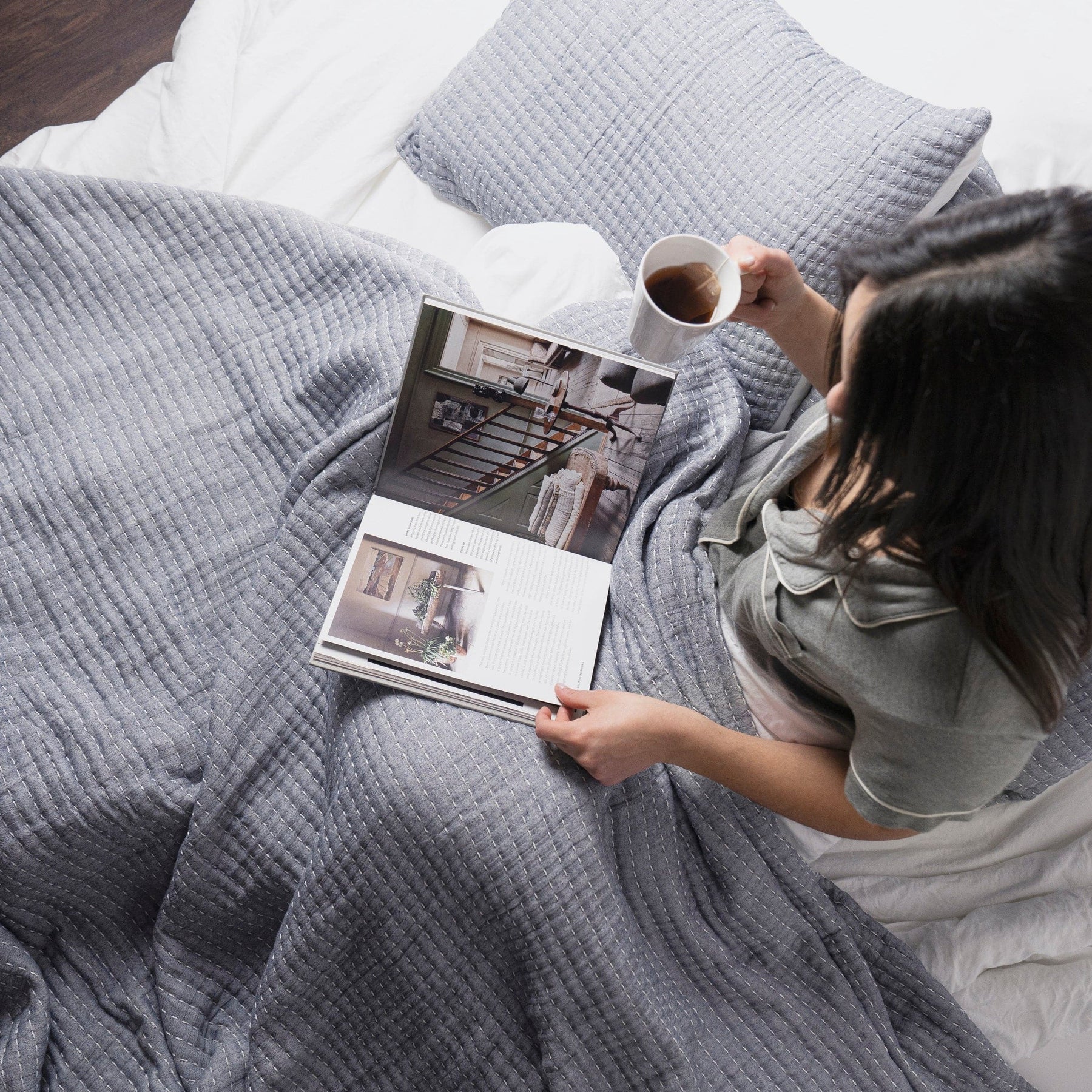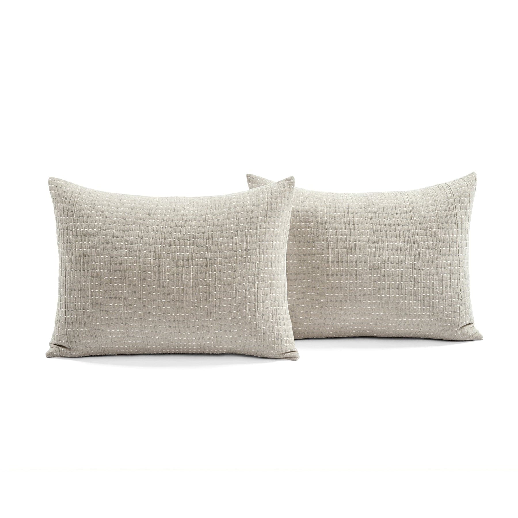 This 3-piece quilt set features soft, yarn-dyed cotton and textured kantha-style stitching. Reversible, breathable, and easy to layer — it’s a versatile staple for modern, farmhouse, or minimalist bedrooms.