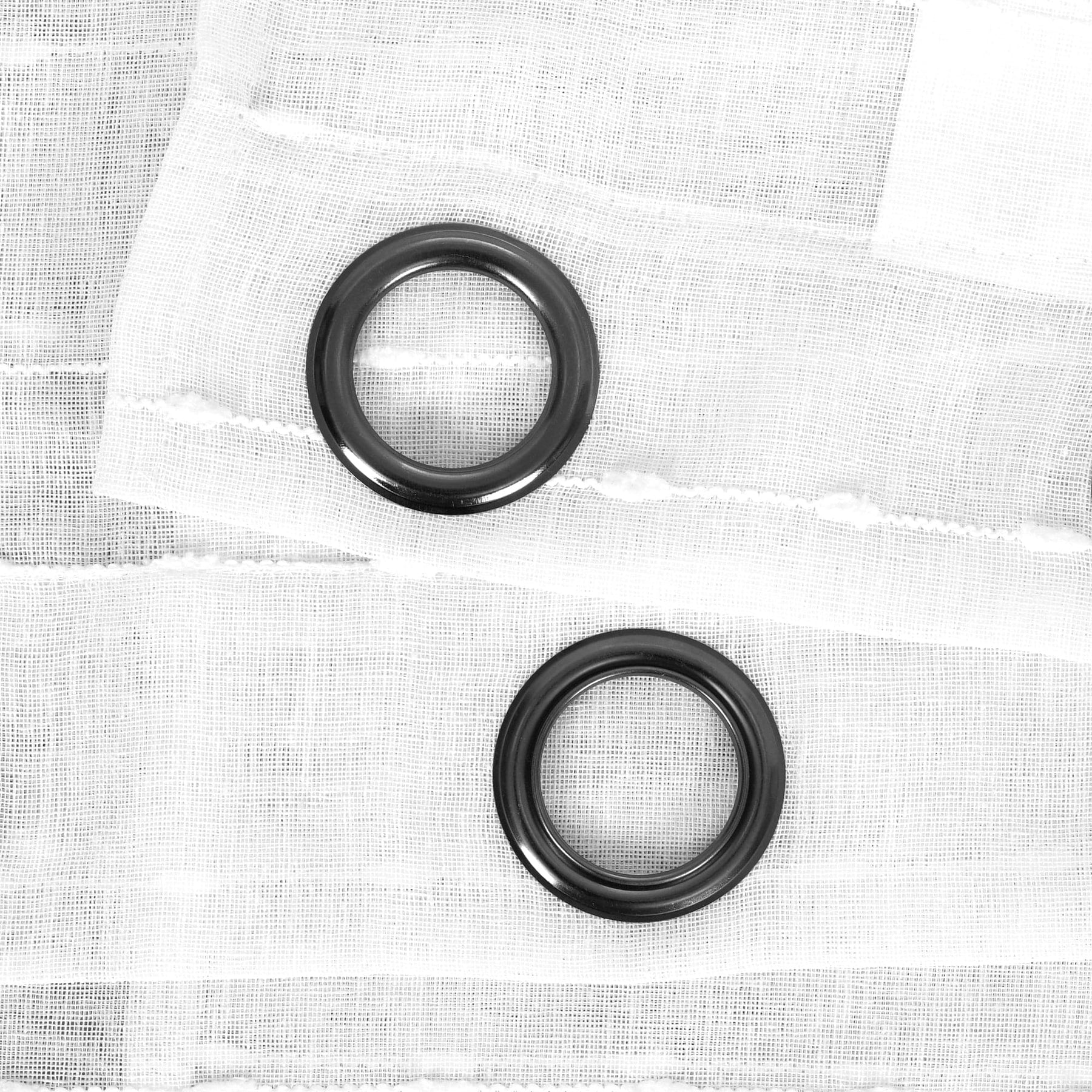 Metal grommets on the Farmhouse Textured Sheer Window Curtain Panel Set slide onto the curtain rod for simple installation. The grommets measure about 1.6 inches in diameter.