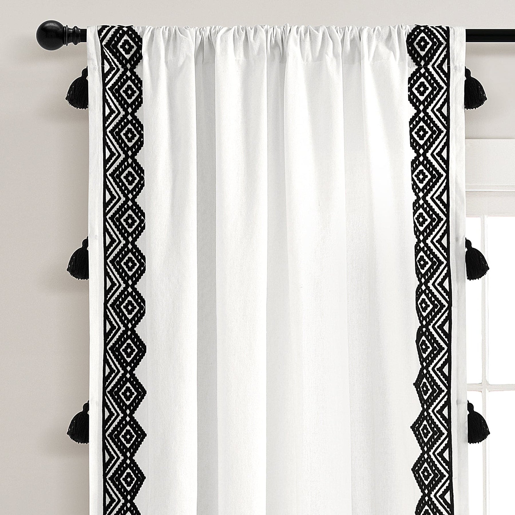Whether you go for modern or boho chic style in your home, this design is sure to add subtle luxury to your space. This Aztec Diamond Border Tassel Window Curtain Panel fits naturally into many design styles. This panel is ideal for a primary bedroom, guest bedroom, dining room, home office or living room.