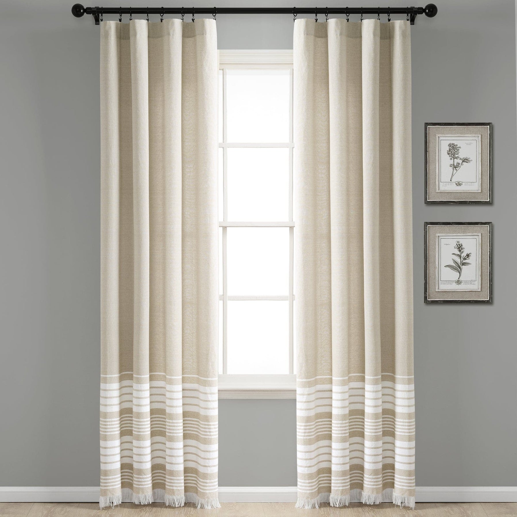 Our Nantucket Yarn Dyed Tassel Fringe Window Curtain Panel Set is available in multiple neutral colors and varying lengths. Each panel is 40 inches wide and is available in your choice of 84 inches or 95 inches in length (some colors may not be available in all sizes). This curtain style is sold by the pair, so you will receive two panels per order.