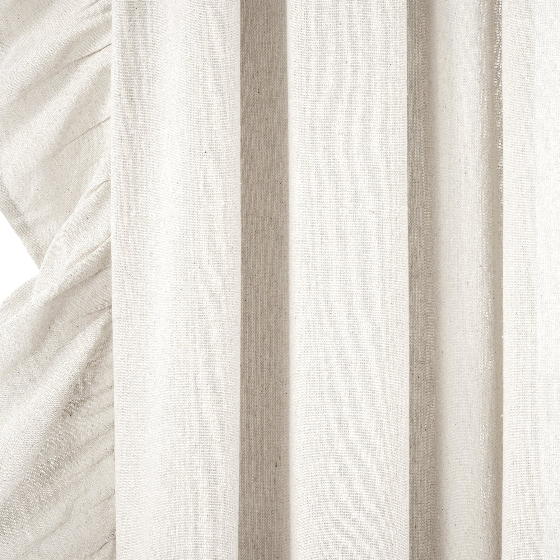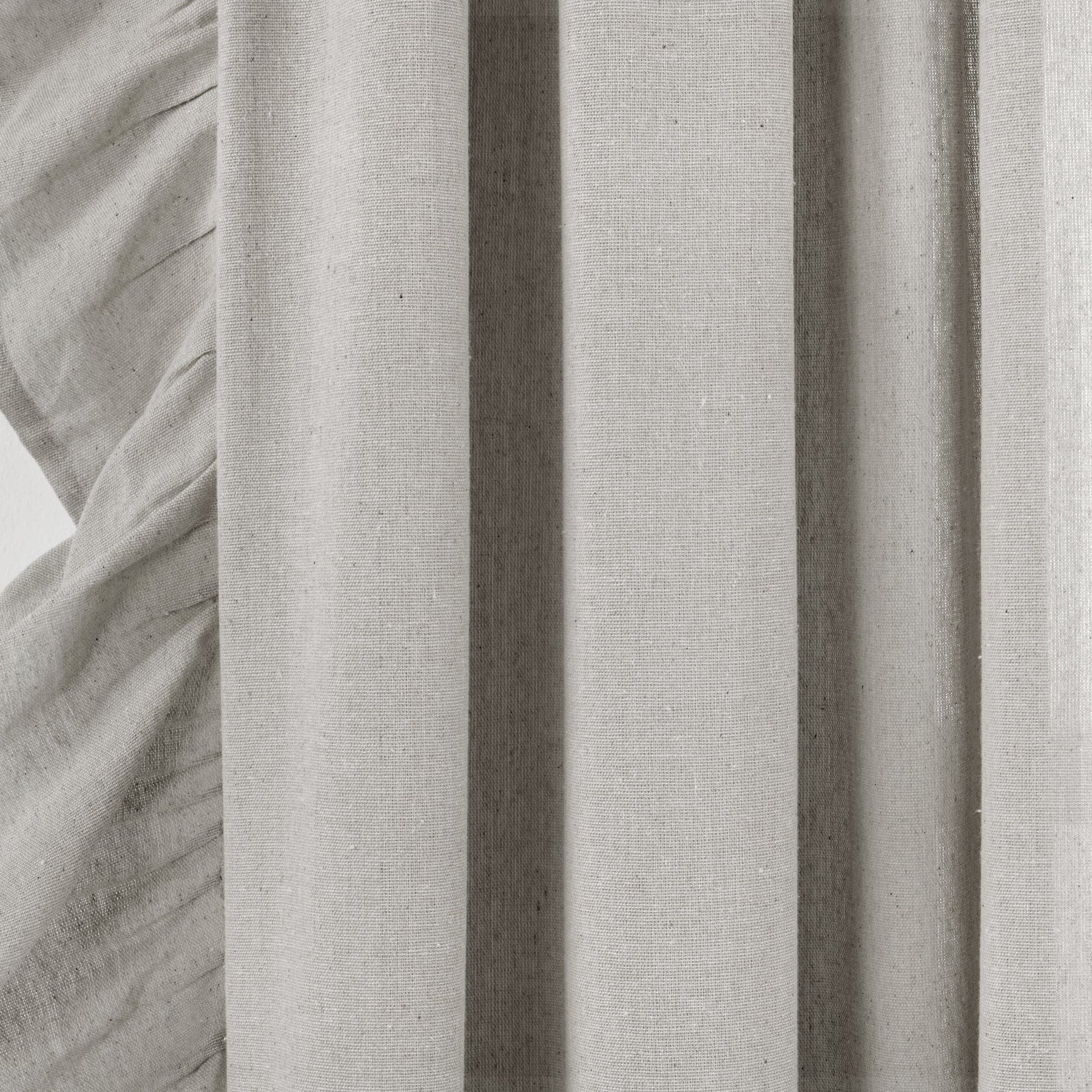 This window curtain satisfies a shabby and chic inspired style. The elegant ruffles along three edges of each Faux Linen Ruffle Window Curtain Panel offer a graceful presence into your living room, home office, nursery, or bedroom.