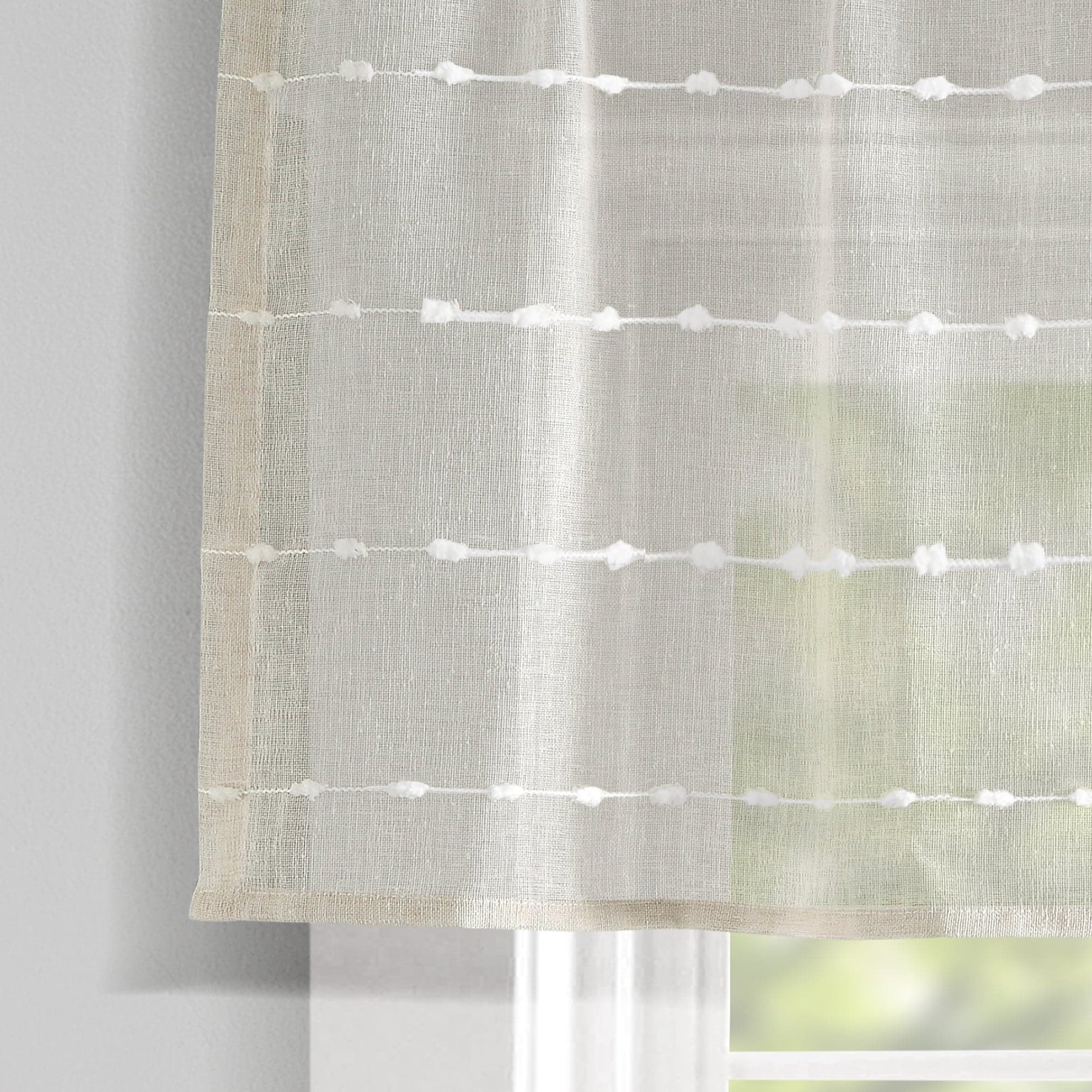 Decorate the windows of your farmhouse home with this stylish sheer valance. The simple textured pattern fits well in a kitchen, bathroom or den. Coordinate this valance with the matching tier set or full length curtains for more privacy.