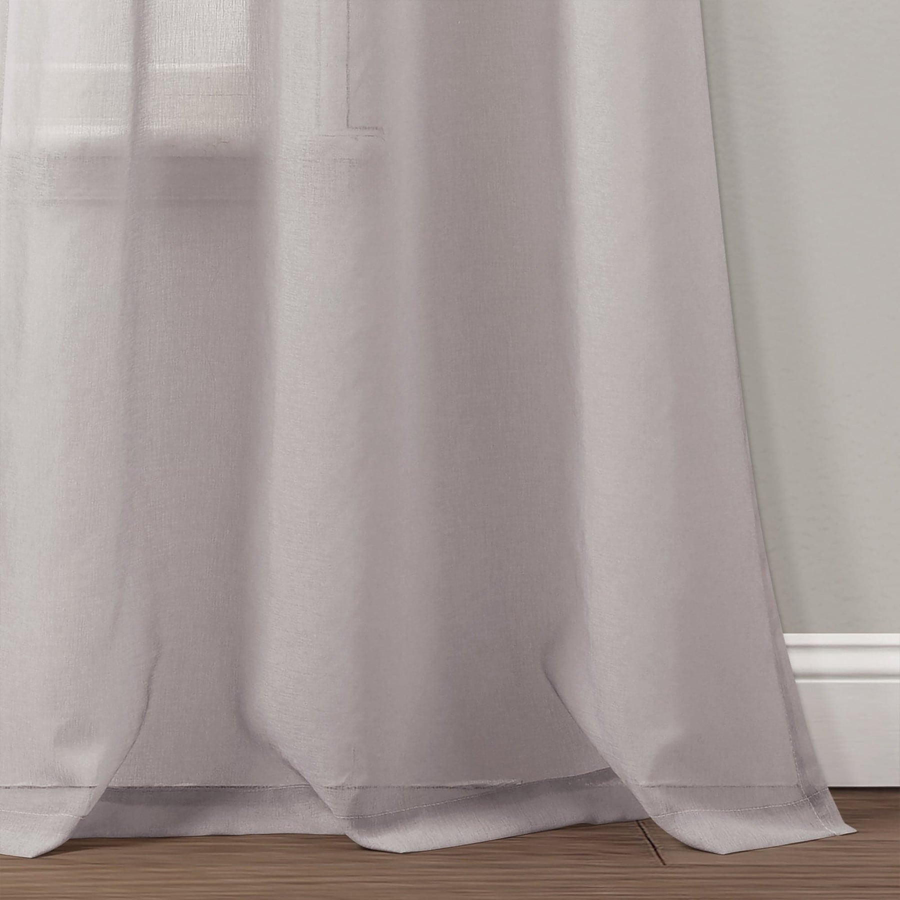 Our Umbre Fiesta Sheer Window Curtain Panel Set is available in multiple color options, including yellow/gray and blush/gray. Each panel is 38 inches wide and 84 inches in length. This curtain style is sold by the pair, so you will receive two panels per order.