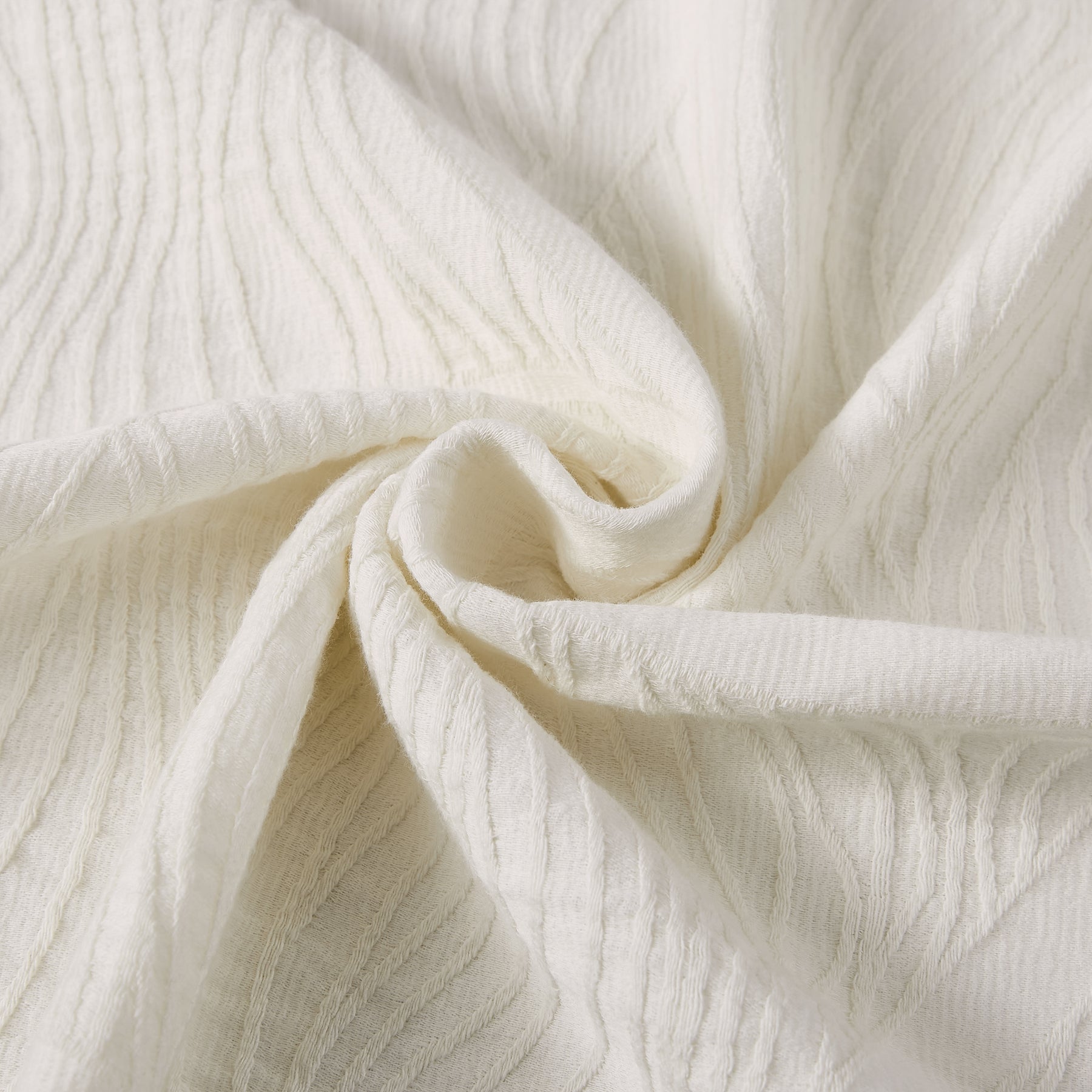 Jacquard shower curtain with textured ridges and 12 button holes for easy hanging. Measures 72" x 72". Use with liner (sold separately). OEKO-TEX® certified.