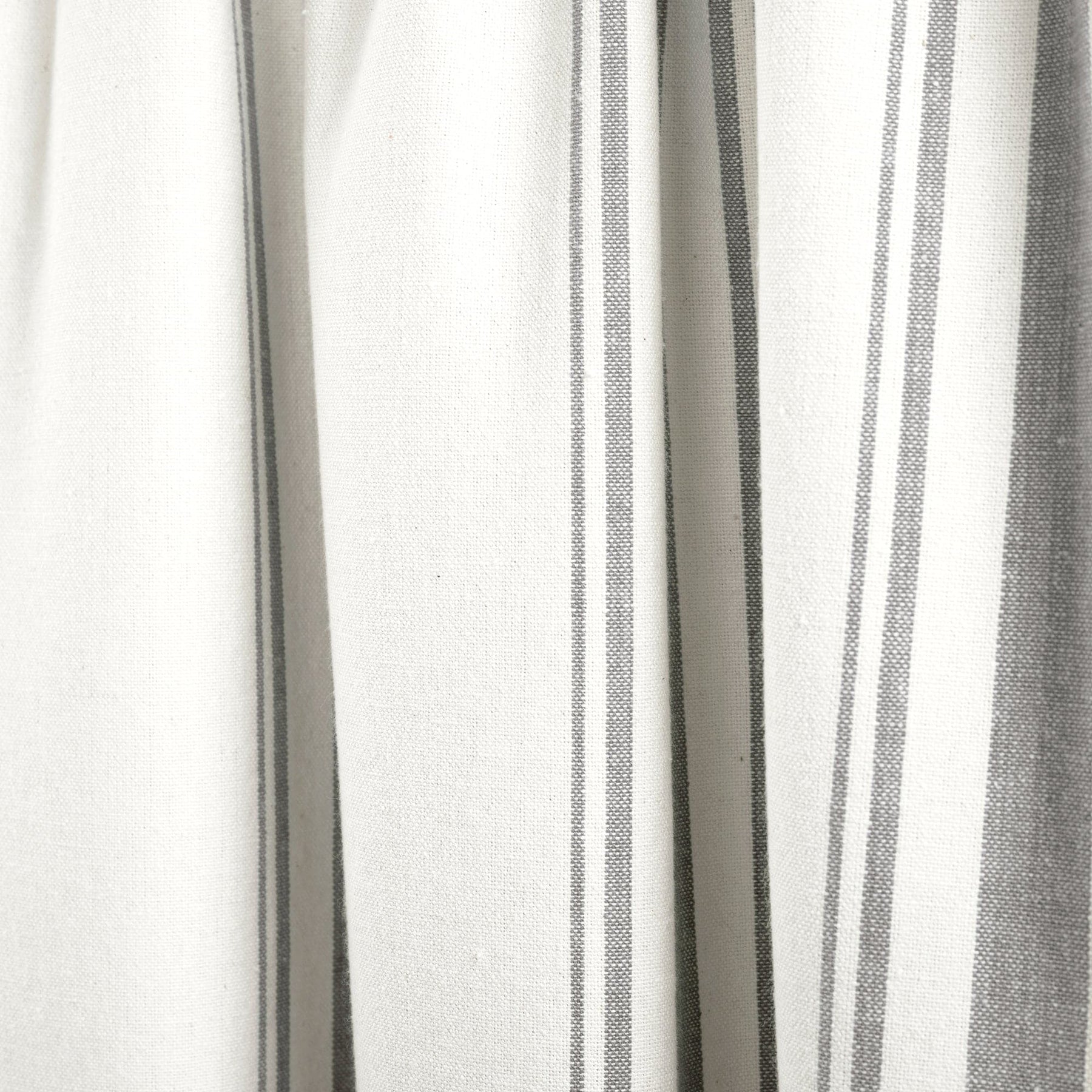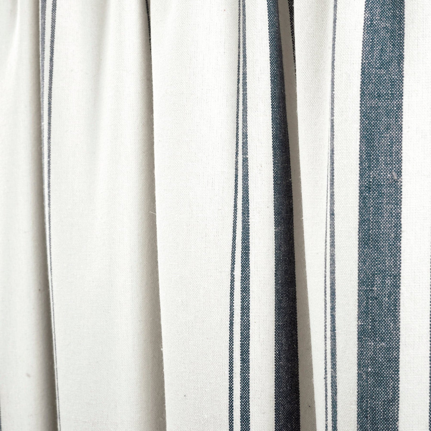 In addition to farmhouse design themes, you could also use this Farmhouse Stripe Yarn Dyed Recycled Cotton Valance in a traditional, cottage, or coastal decor theme, depending on the color you choose. Speaking of which, the background color of the fabric is a creamy off-white color.