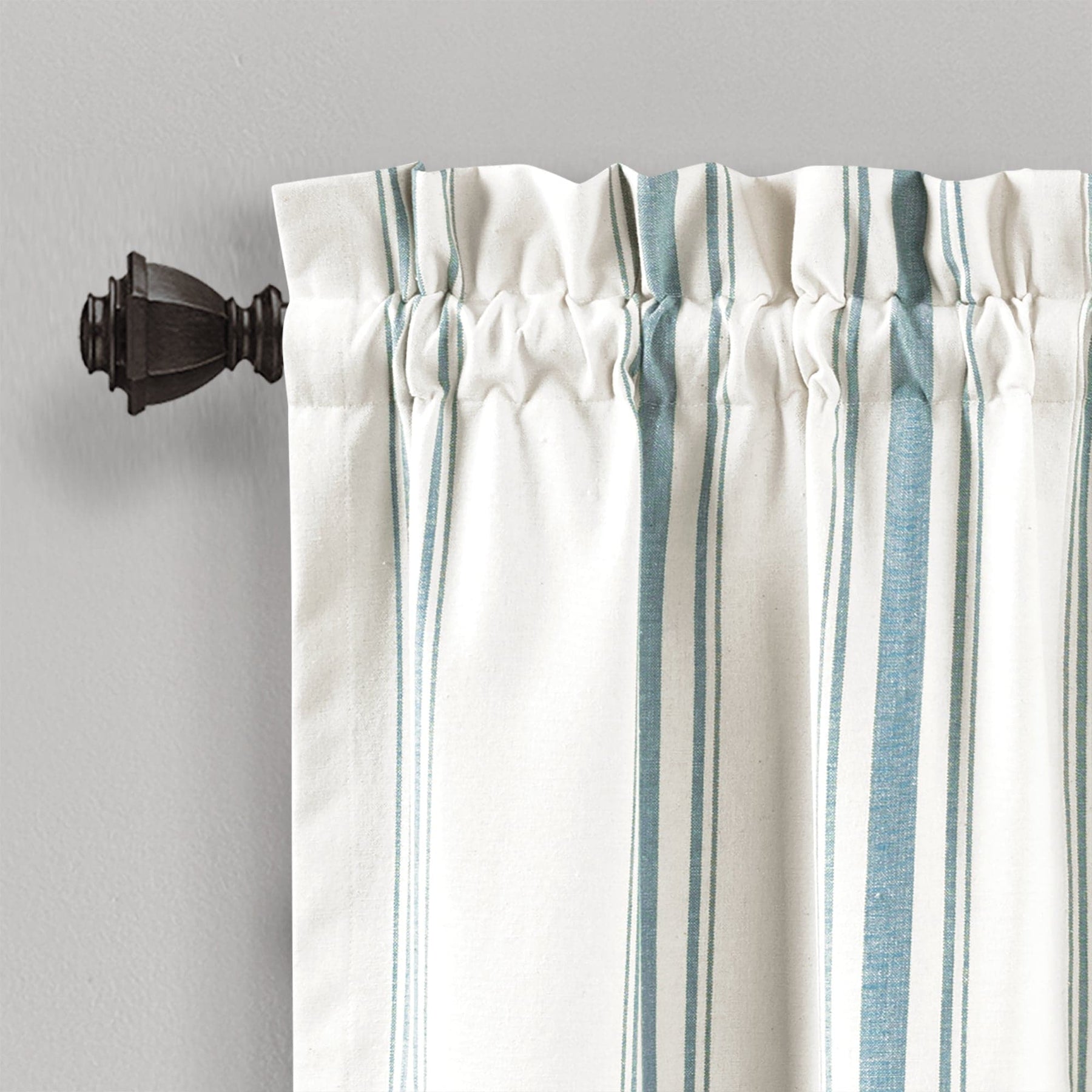 No need to worry about fading, the yarn dyed cotton lasts longer through use than a printed item would. This Farmhouse Stripe Yarn Dyed Recycled Cotton Valance is sold individually. Each valance is 52 inches wide and 18 inches long, plus a 2-inch header above the rod pocket.