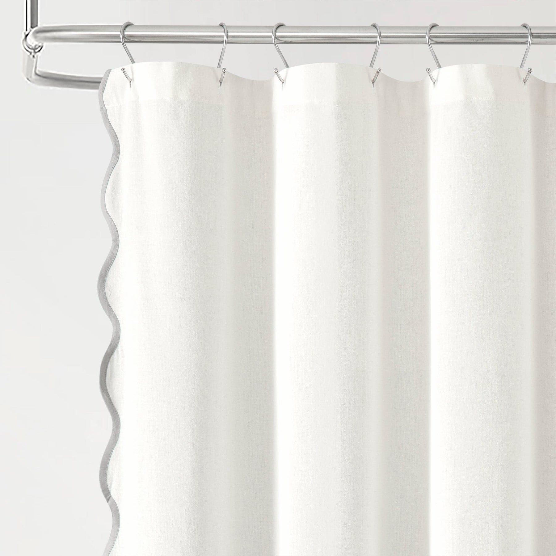 Create a serene, resort-like feel in your primary or guest bathroom with this Coastal Chic Scallop Edge Shower Curtain. Measuring 72 inches along each side, this shower curtain should fit most standard bathtubs. It installs easily with standard shower curtain rings or hooks (not included). Its opacity adds full privacy to the person taking a bath or shower.