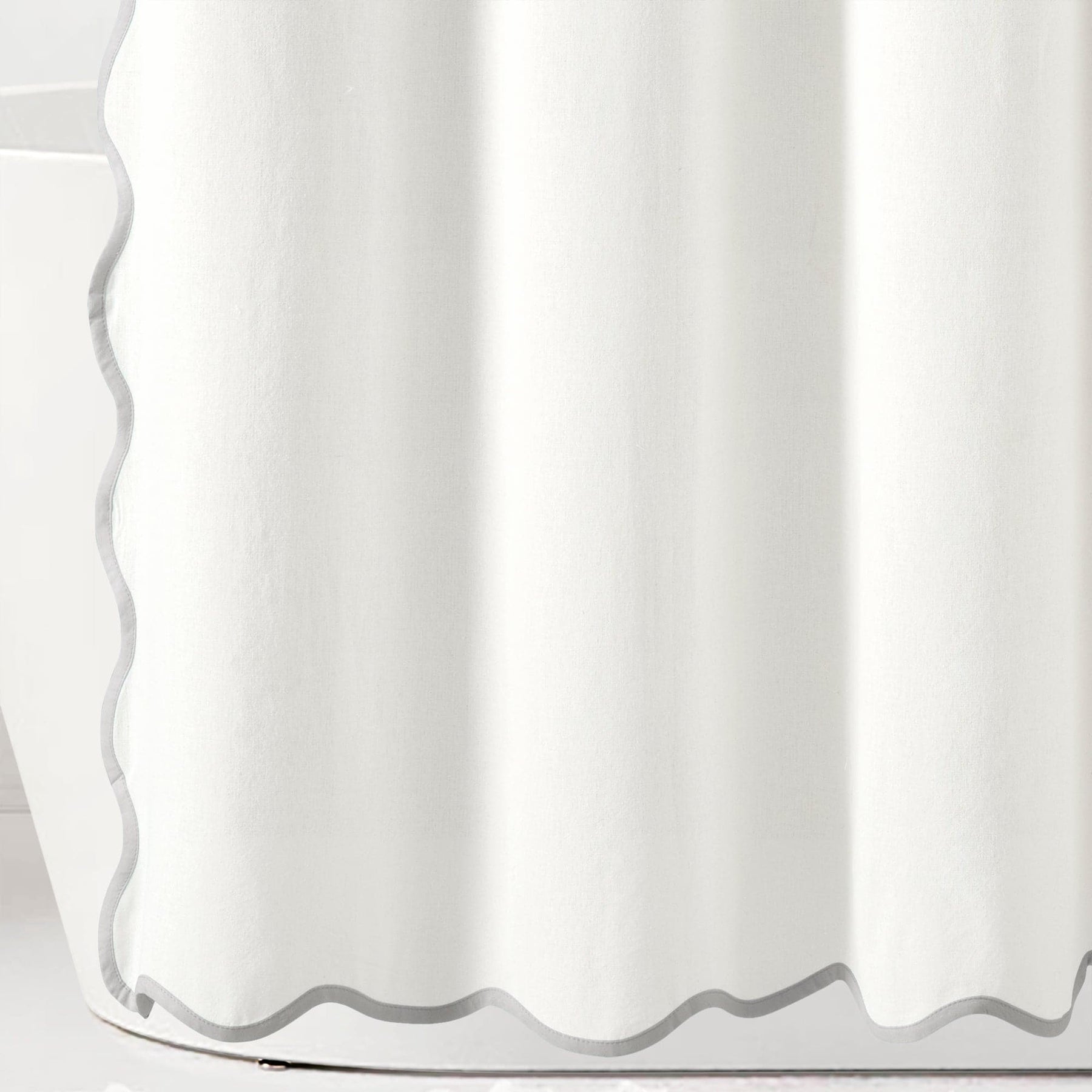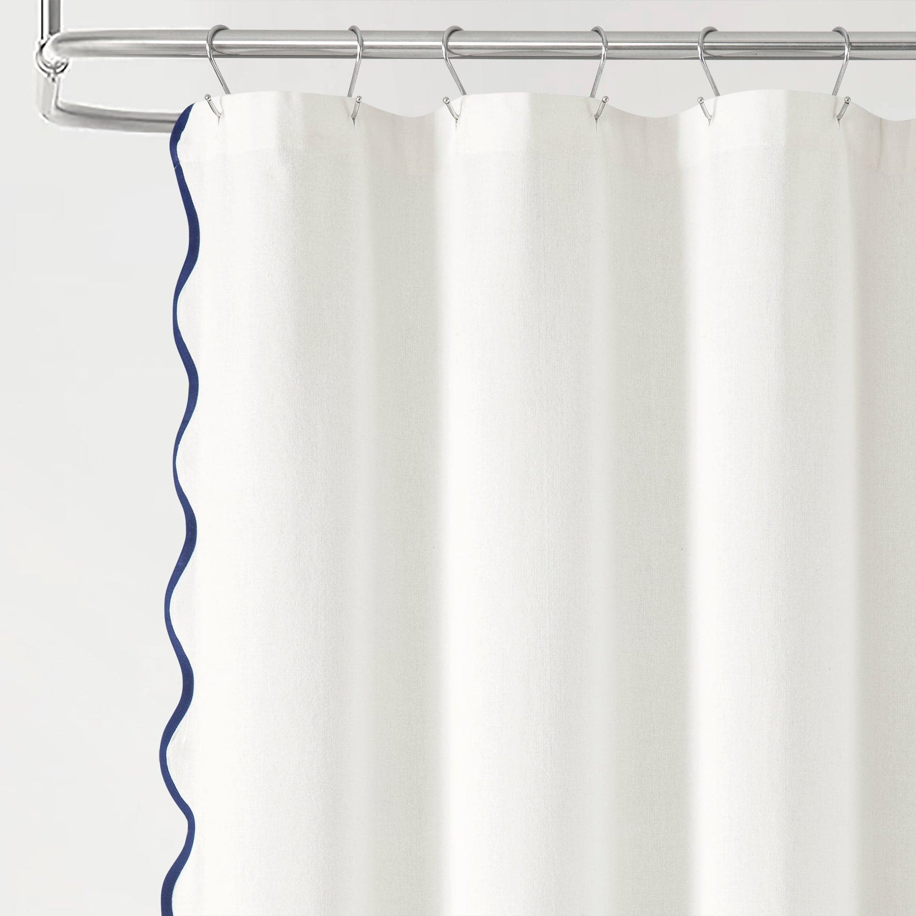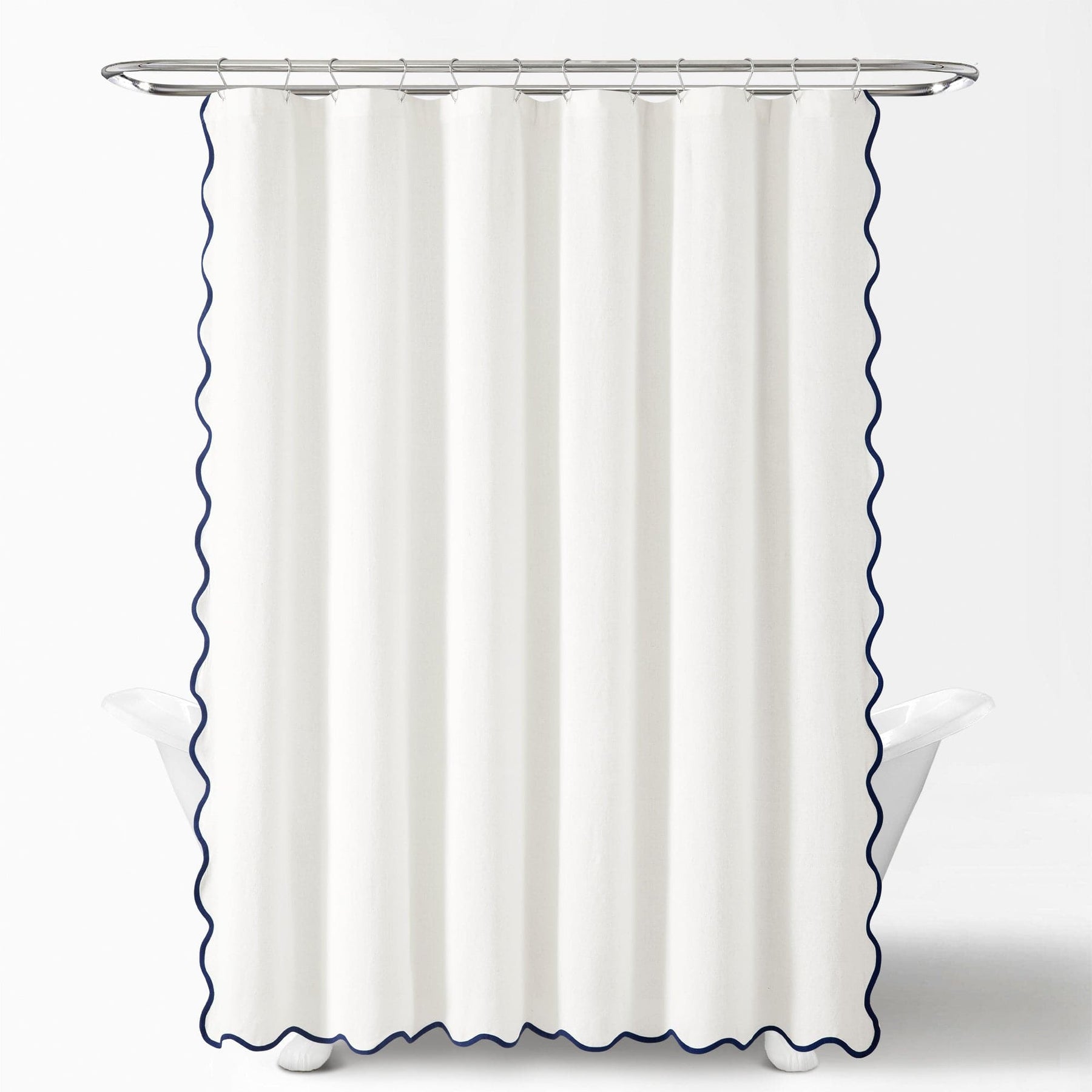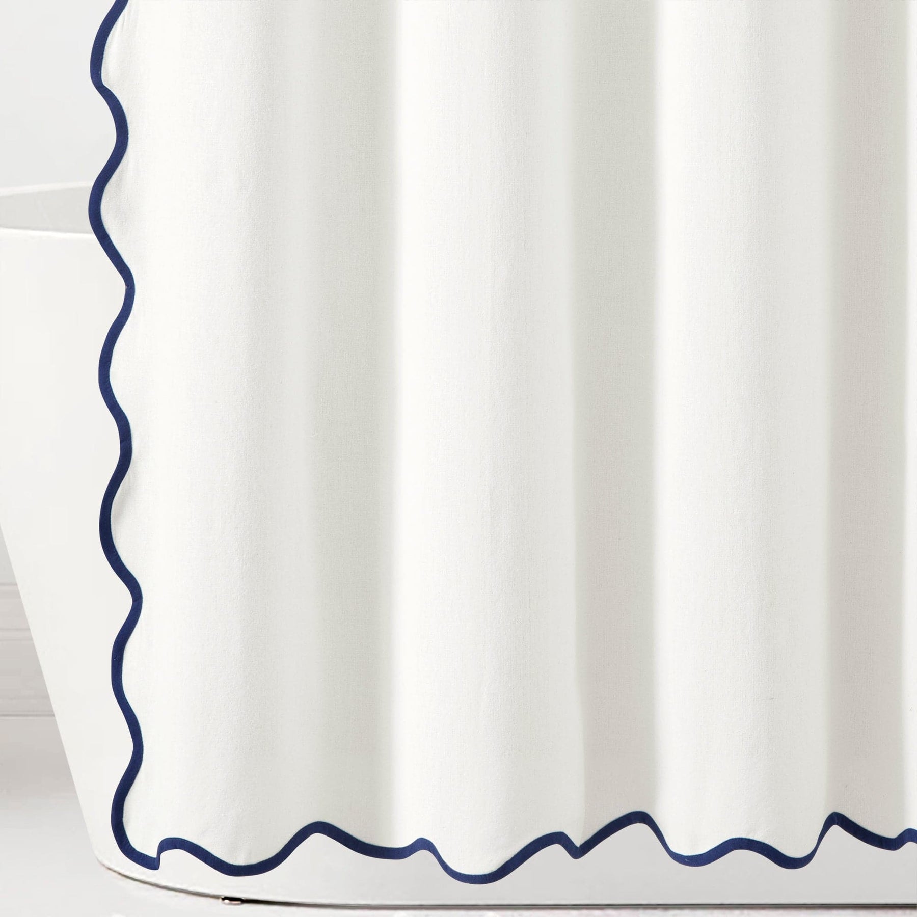 Bring a perfect blend of breezy seaside charm and practical elegance for your bathroom with this Coastal Chic Scallop Edge Shower Curtain. The scalloped edge design, reminiscent of the rolling waves along the shoreline, infuses your bathroom with a tranquil coastal ambiance.