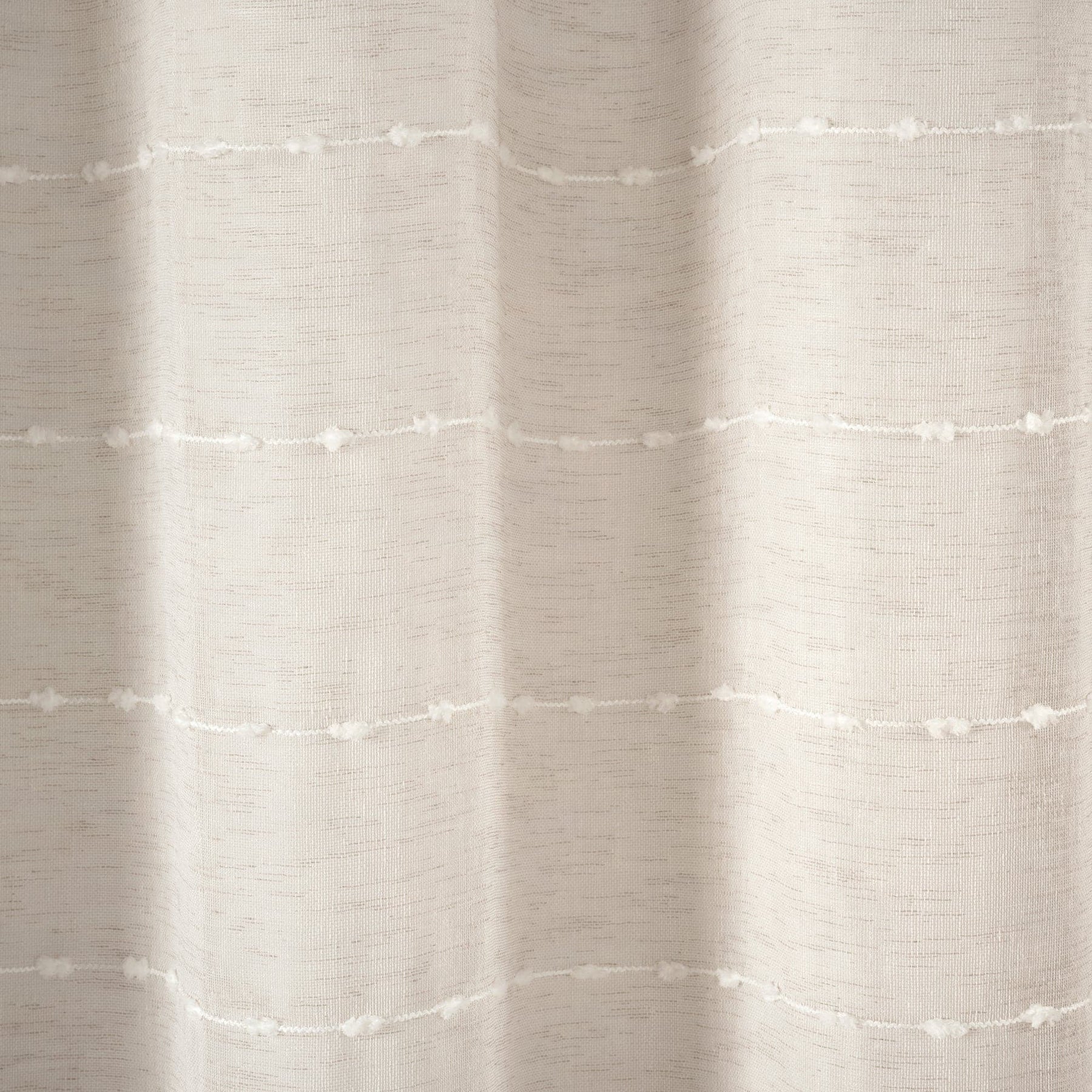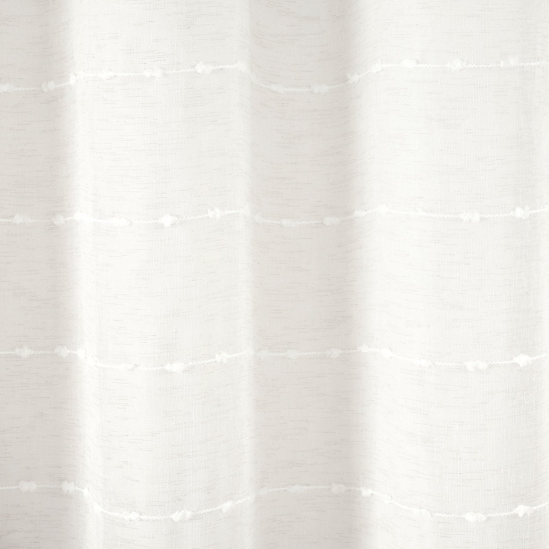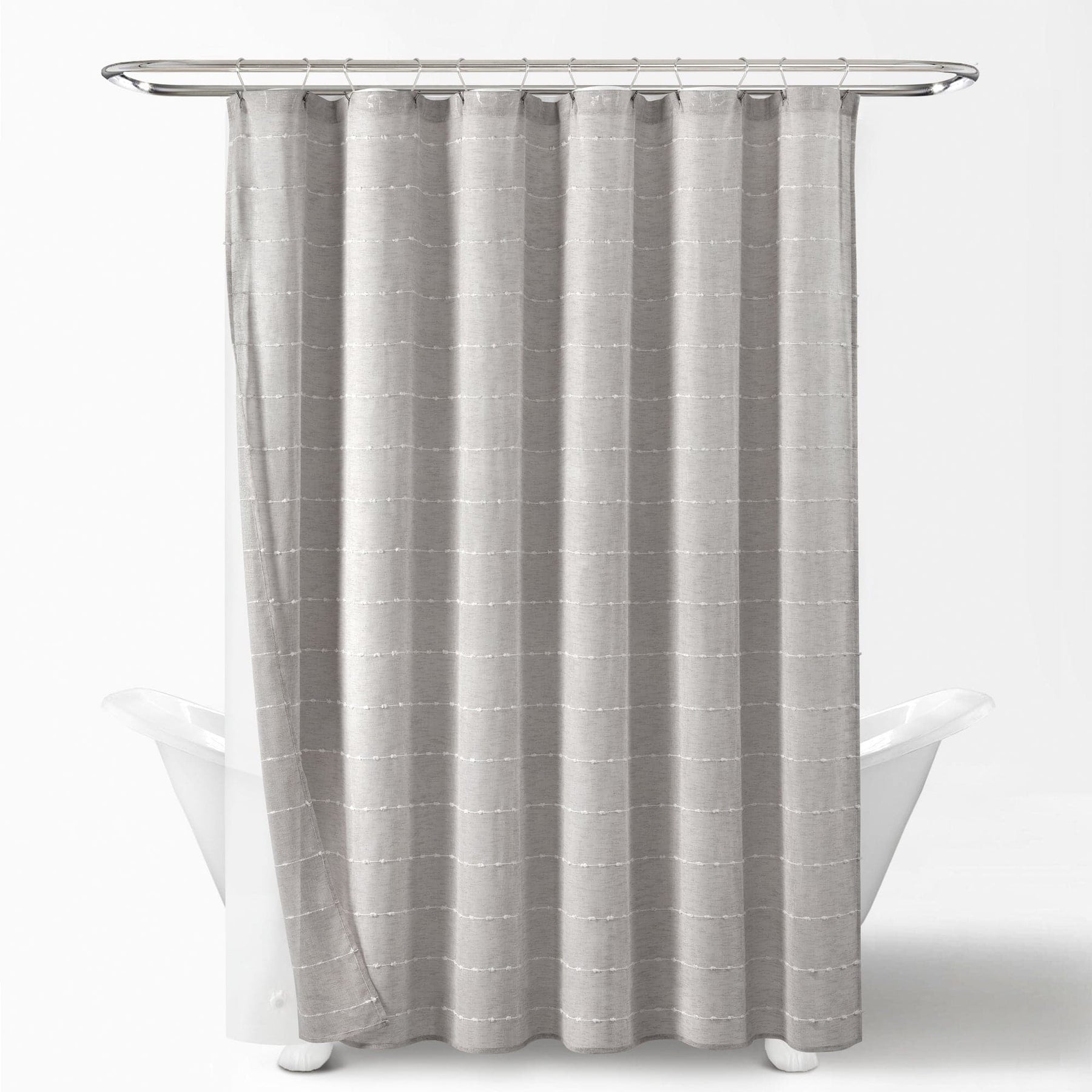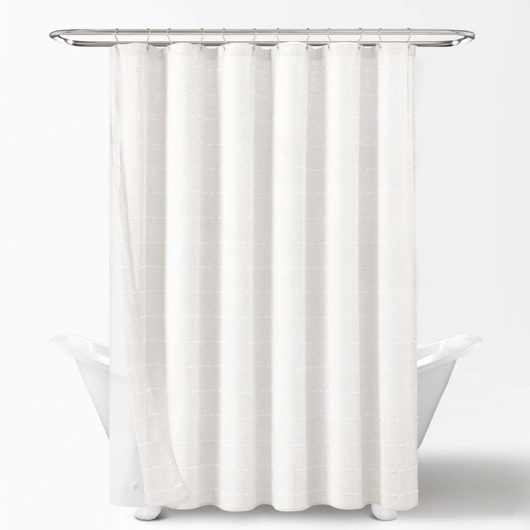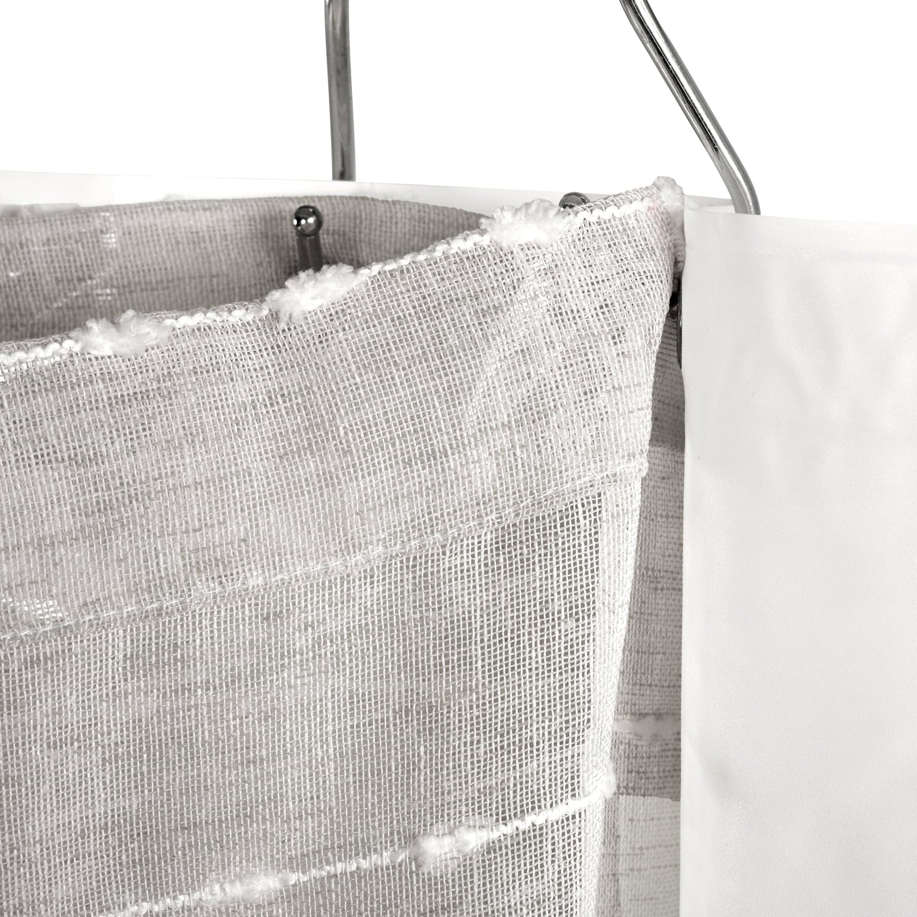 The design effect of this Farmhouse Textured Sheer With Peva Lining Shower Curtain Set is just as lovely as its textured stripe pattern. Your primary or guest bathroom will feel spacious and light with this neutral decorative addition.