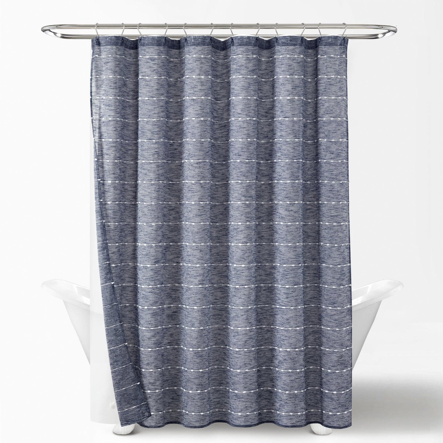 One of the best ways to complement the farmhouse style is with textured stripes. This lightweight Farmhouse Textured Sheer With Peva Lining Shower Curtain Set upgrades classic stripes with its stylish tufting detail stretching from side to side. This is sold as a two-piece set that includes a waterproof PEVA liner.