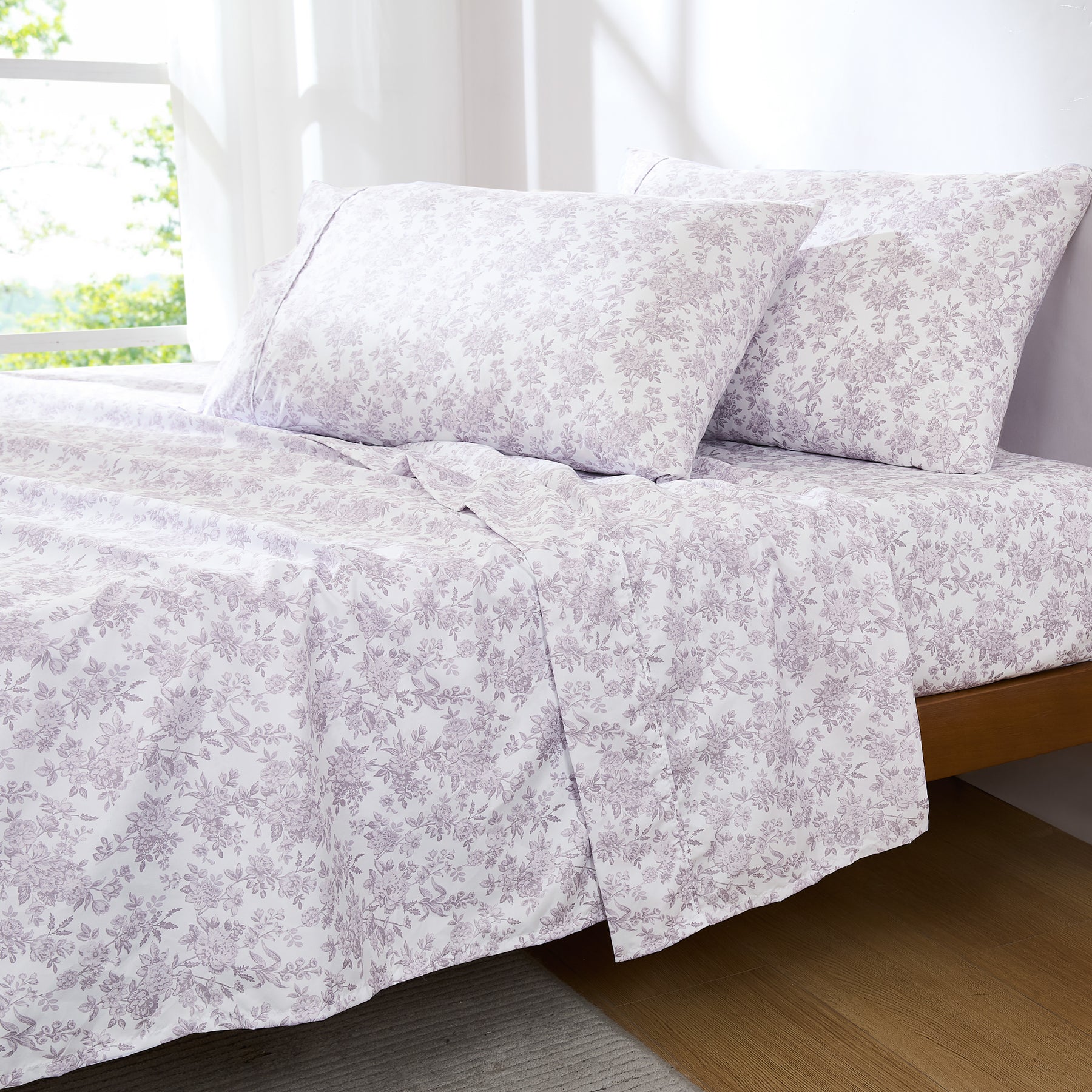 Layer your bed with the prettiest peonies. Blooming flowers adorn these charming floral bed sheets, easily complementing any kid's or teen's cottage core themed bedscape. Made with an ultra soft microfiber for your comfort. This sheet set includes flat sheet, fitted sheet, and pillowcases. STANDARD 100 by OEKO-TEX® certified, all components have been tested and certified free from harmful substances. Machine washable for easy care.