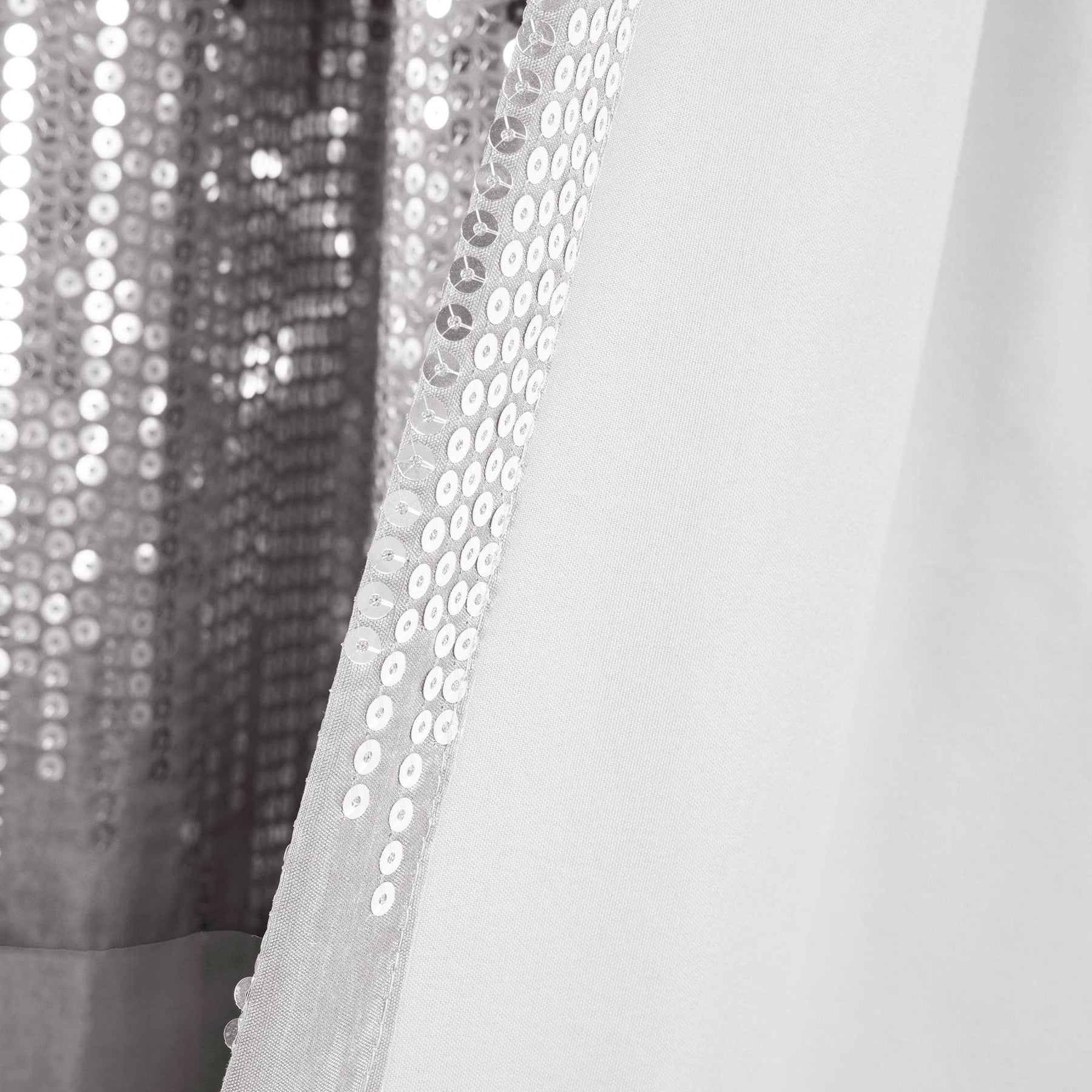 Add some glitz and glamour to your home with this shimmering Night Sky 100% Blackout Window Curtain Panel. With a two-toned color block and sequin design, this curtain will make any room sparkle. The combination of complimentary colors gives these curtains a beautiful look that brightens the mood of any room in the home.