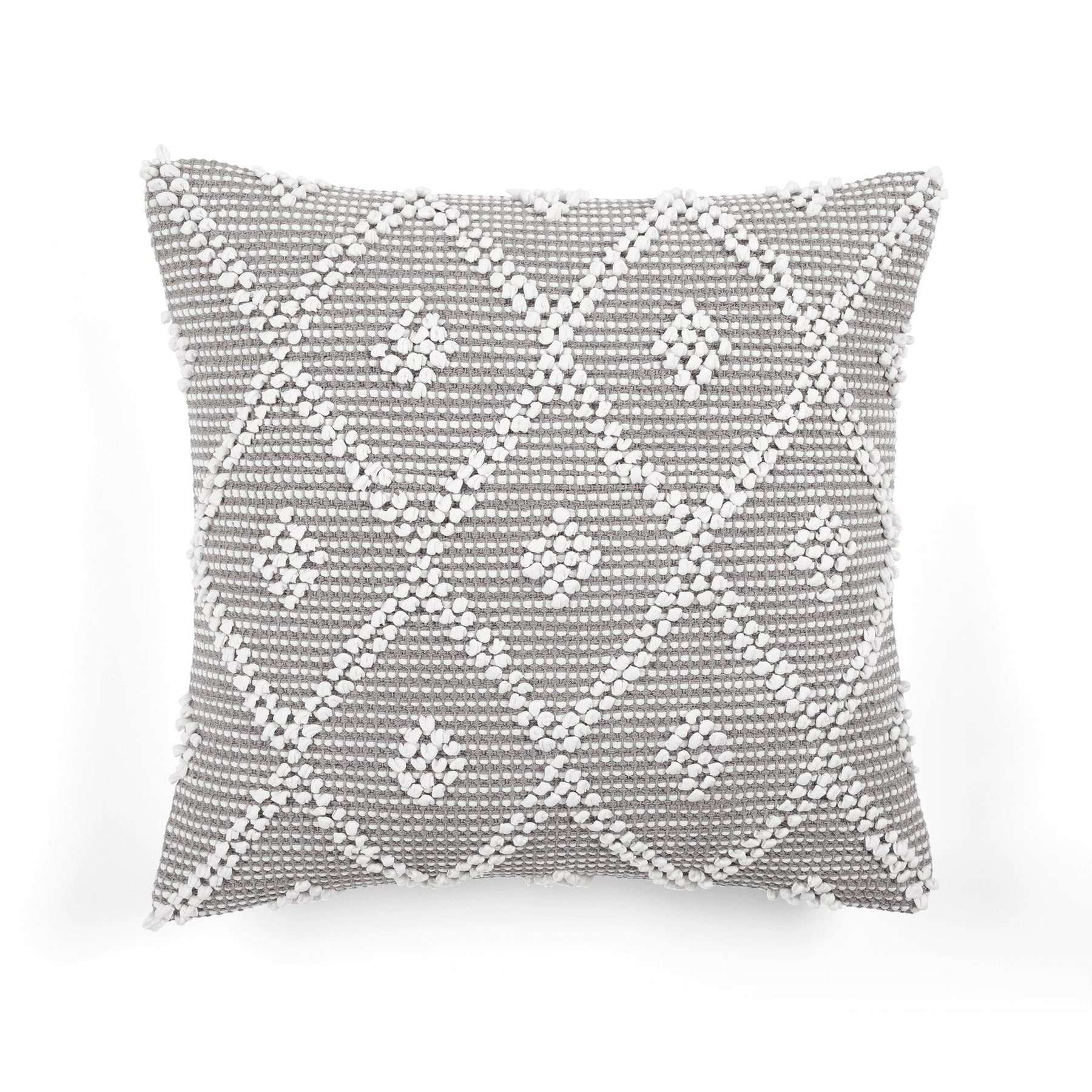 Textured cotton pillow cover with raised diamond pattern. 20"x20" square design fits modern farmhouse, cottage, hygge, and coastal décor. Insert sold separately.