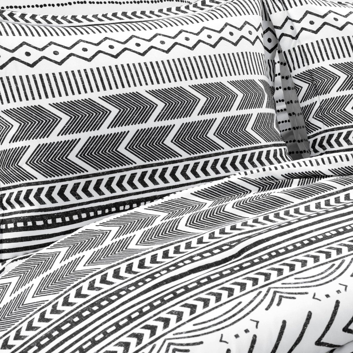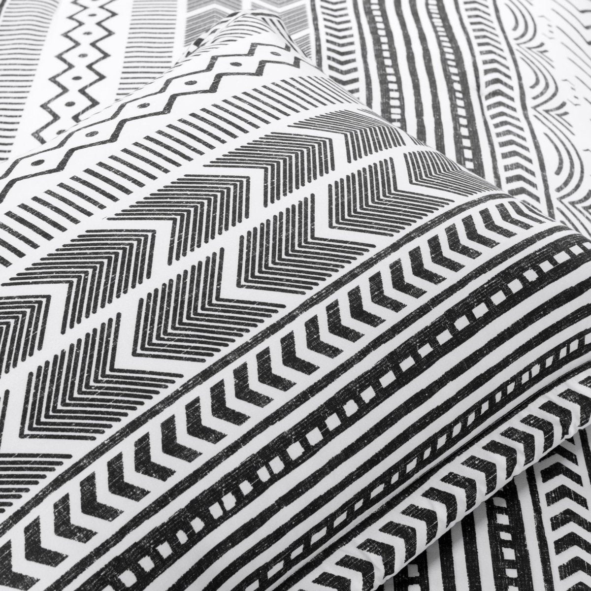The reverse side of the comforter features a print of dotted stripes against a white background. This gives you the option to change the look of the room in an instant, simply by flipping the comforter over. The two sides of the Hygge Geo Comforter 5 Piece Set are also great for layering with other quilts or throws.
